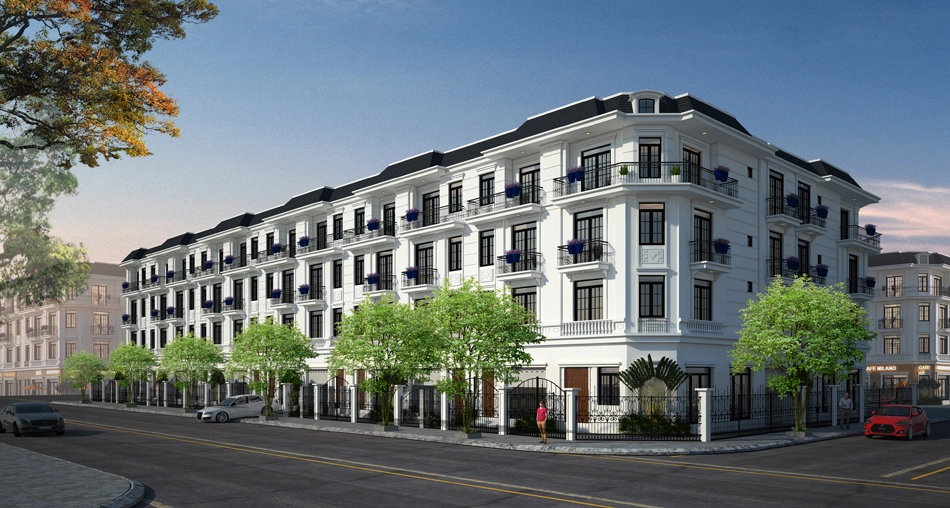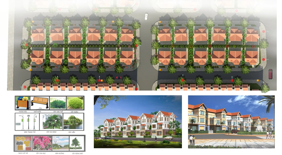 + Nhà ở song lập: 44 nhà biệt thự song lập, cao 3 tầng, tổng diện tích là 8.181,4 m2