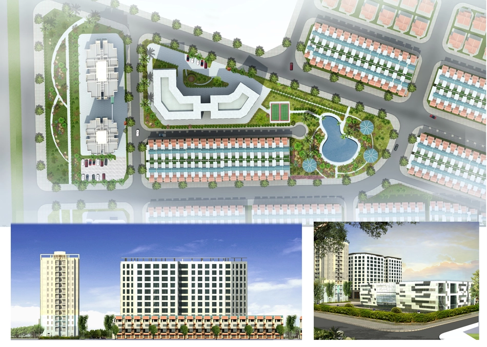 + Nhà liền kề: 203 nhà ở liền kề, cao 4 tầng với tổng diện tích là 21.744,5 m2