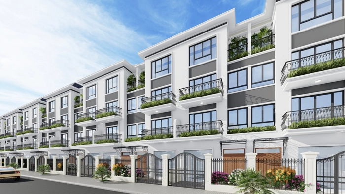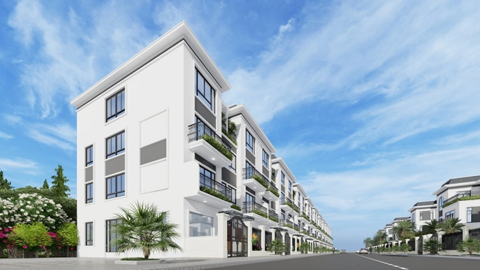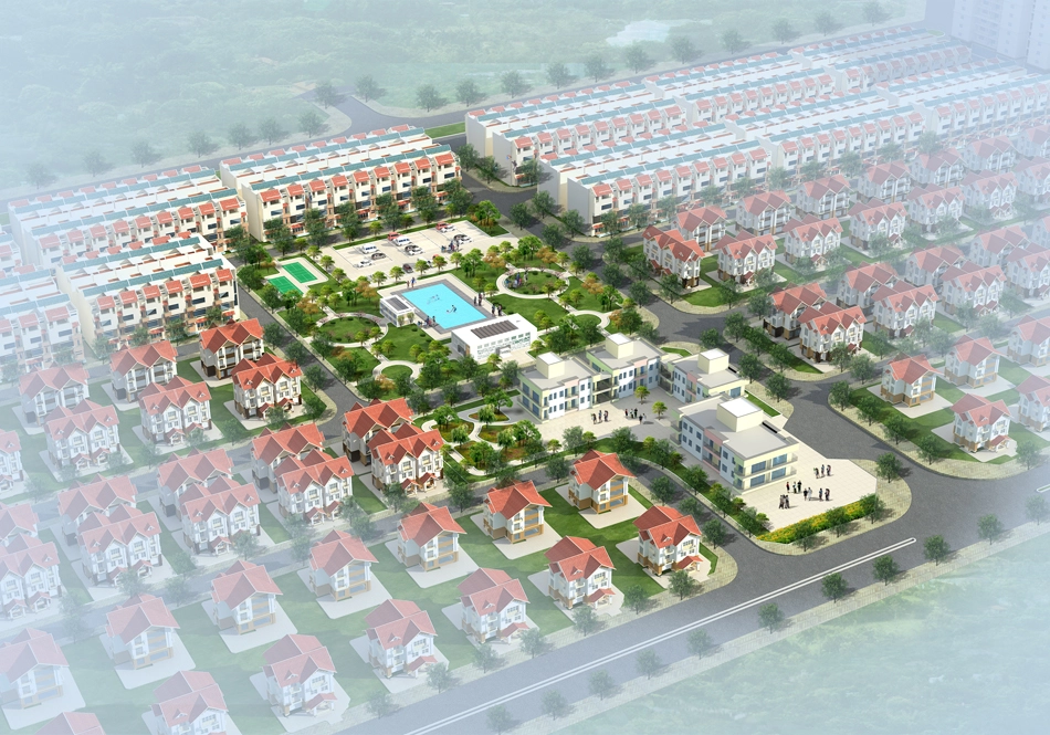 – Biệt thự song lập (126 nhà biệt thự song lập, cao 3 tầng, tổng diện tích là 26.389,7 m2)Nhà ở liền kề (212 nhà ở liền kề, cao 4 tầng với tổng diện tích là 25.392,3 m2)