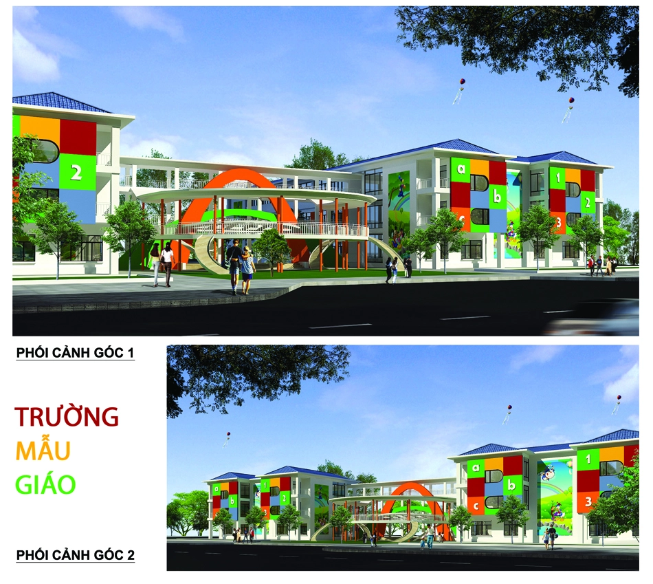 - Nhà trẻ (cao trung bình 3 tầng với tổng diện tích sàn là 3.450,1 m2).